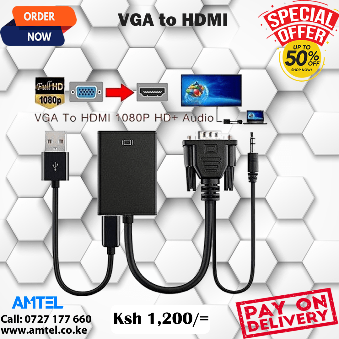 Other than VGA to HDMI Converters in Kenya Nairobi, Check out other HDMI Cable price in Nairobi Kenya. Take time to look at our fb page Amtel Online Merchants